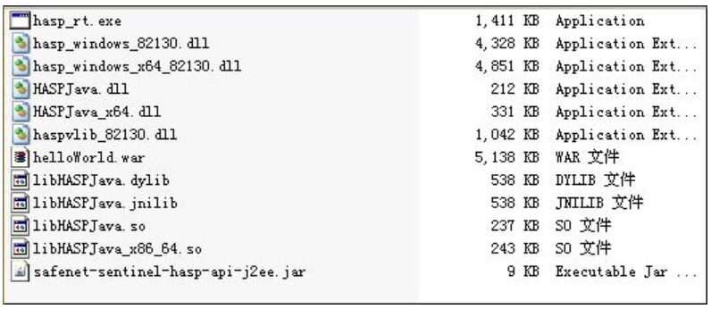 war 包加密后,產生的文件相對較少,此處只需要將原來移出的 jar 包和.class 文件重新加入,部署時將 safenet-sentinel-hasp-api-j2ee.jar 放入$CATALINA_HOME/lib 目錄下。
