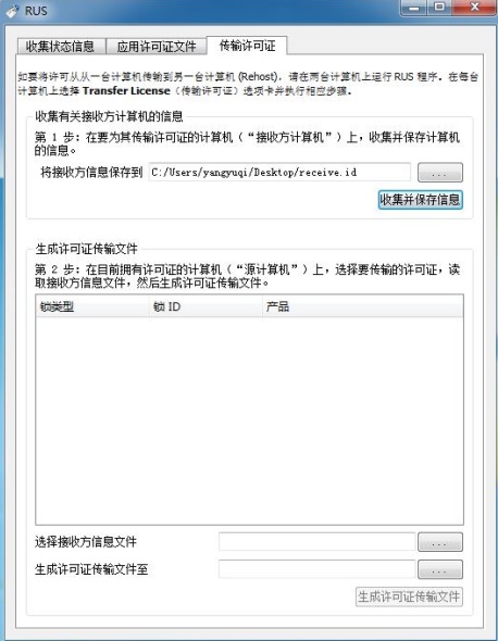 在B電腦上進行如圖的操作,打開RUS,選擇接收電腦的相關(guān)信息存儲為receive.id,然后點擊“收集并保存信息”。就會看到已經(jīng)生成了receive.id這個文件。然后,把這個id 文件發(fā)給 A 電腦。
